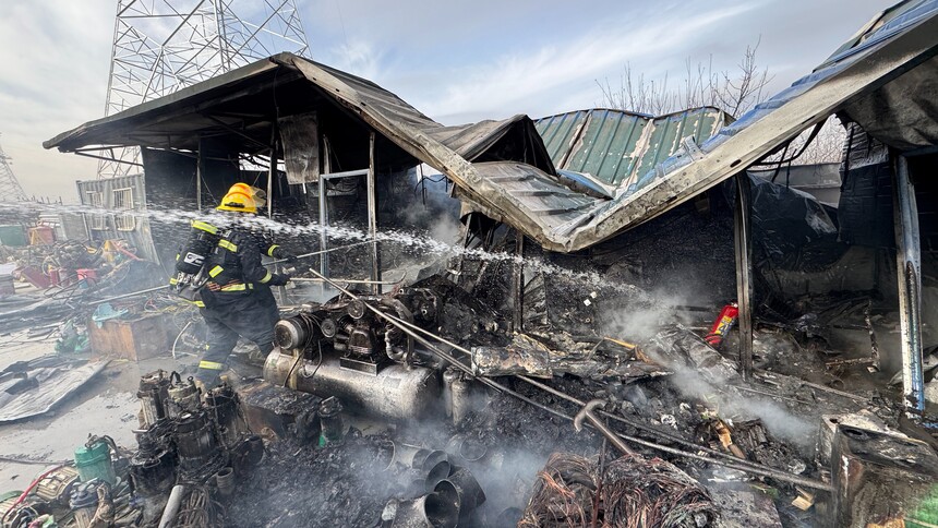 濃煙彌漫中,偵察小組深入火場(chǎng)內(nèi)部勘查,快速鎖定起火范圍、摸清燃燒物質(zhì)特性。指揮員依據(jù)偵察結(jié)果,果斷制定“阻截包圍、重點(diǎn)打擊”的滅火方案,一場(chǎng)與火魔的較量迅速展開(kāi)。救援現(xiàn)場(chǎng),水帶干線快速鋪開(kāi),兩支水槍驟然出水。一號(hào)槍占據(jù)上風(fēng)方向,對(duì)猛烈燃燒的核心區(qū)域展開(kāi)強(qiáng)攻;二號(hào)槍布設(shè)水幕,嚴(yán)防火勢(shì)向毗鄰建筑蔓延。指戰(zhàn)員們配合默契,攻防有序,在高溫與濃煙中堅(jiān)守陣地。針對(duì)建材火災(zāi)燃燒猛、易復(fù)燃的特點(diǎn),指揮員靈活調(diào)整戰(zhàn)術(shù),逐步壓縮火場(chǎng)范圍。