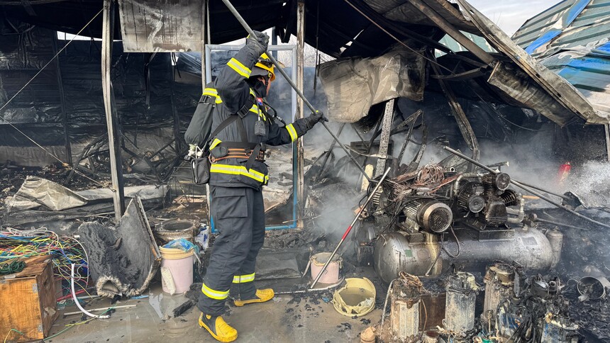 一倉(cāng)庫(kù)突發(fā)大火,隊(duì)伍管理事業(yè)部富縣中隊(duì)迅速出動(dòng)时间:2025-12-22 作者:艾威生消安集團(tuán)【原创】 12月21日,陜西省延安市富縣寺仙鎮(zhèn)一處建筑材料倉(cāng)庫(kù)突發(fā)火情,現(xiàn)場(chǎng)濃煙滾滾,情況危急。艾威生消安集團(tuán)隊(duì)伍管理事業(yè)部富縣中隊(duì)聞警而動(dòng)、快速響應(yīng),憑借高效的滅火處置成功化解險(xiǎn)情,于危急關(guān)頭彰顯了艾威生消防隊(duì)伍的社會(huì)責(zé)任與無(wú)私大愛(ài)。 13時(shí)43分,富縣中隊(duì)接到富縣消防救援大隊(duì)轉(zhuǎn)警,寺仙鎮(zhèn)某建筑材料 倉(cāng)庫(kù)發(fā)生火情,該倉(cāng)庫(kù)內(nèi)堆放板材、管材等大量易燃物品,火勢(shì)一旦失控蔓延,將危及毗鄰民房與倉(cāng)儲(chǔ)設(shè)施,后果不堪設(shè)想。 時(shí)間就是生命,火情就是命令。富縣中隊(duì)立即啟動(dòng)應(yīng)急預(yù)案,調(diào)派1輛水罐消防車以及6名指戰(zhàn)員迅速趕赴現(xiàn)場(chǎng)。14時(shí)10分,救援力量抵達(dá)現(xiàn)場(chǎng)。此時(shí)建筑材料工廠負(fù)責(zé)人已協(xié)調(diào)1輛灑水車,對(duì)火源周邊建筑及可燃物進(jìn)行噴淋降溫,防止火勢(shì)擴(kuò)散。經(jīng)初步核實(shí),現(xiàn)場(chǎng)電源已切斷,無(wú)易燃易爆危險(xiǎn)品,暫無(wú)人員被困。